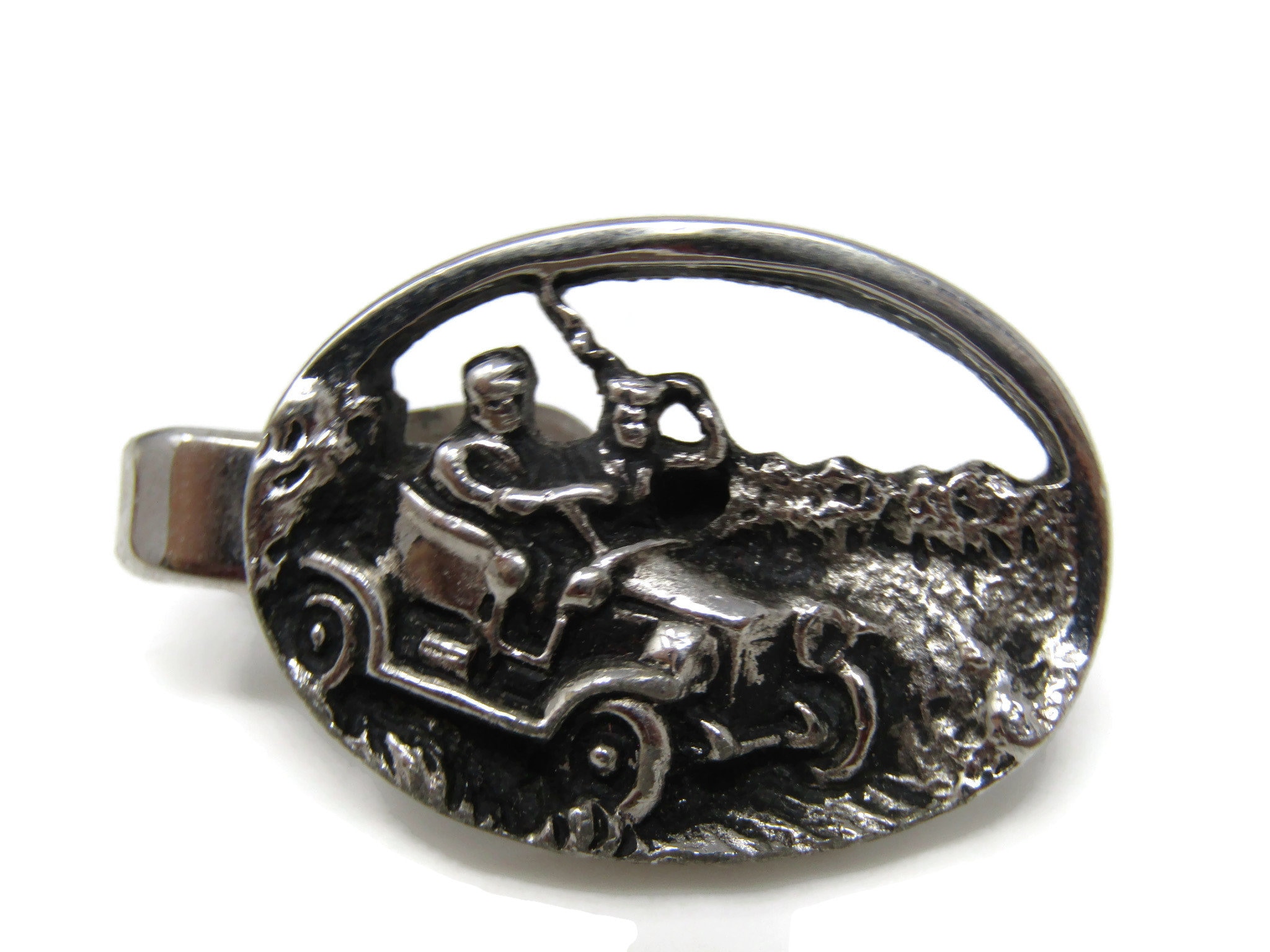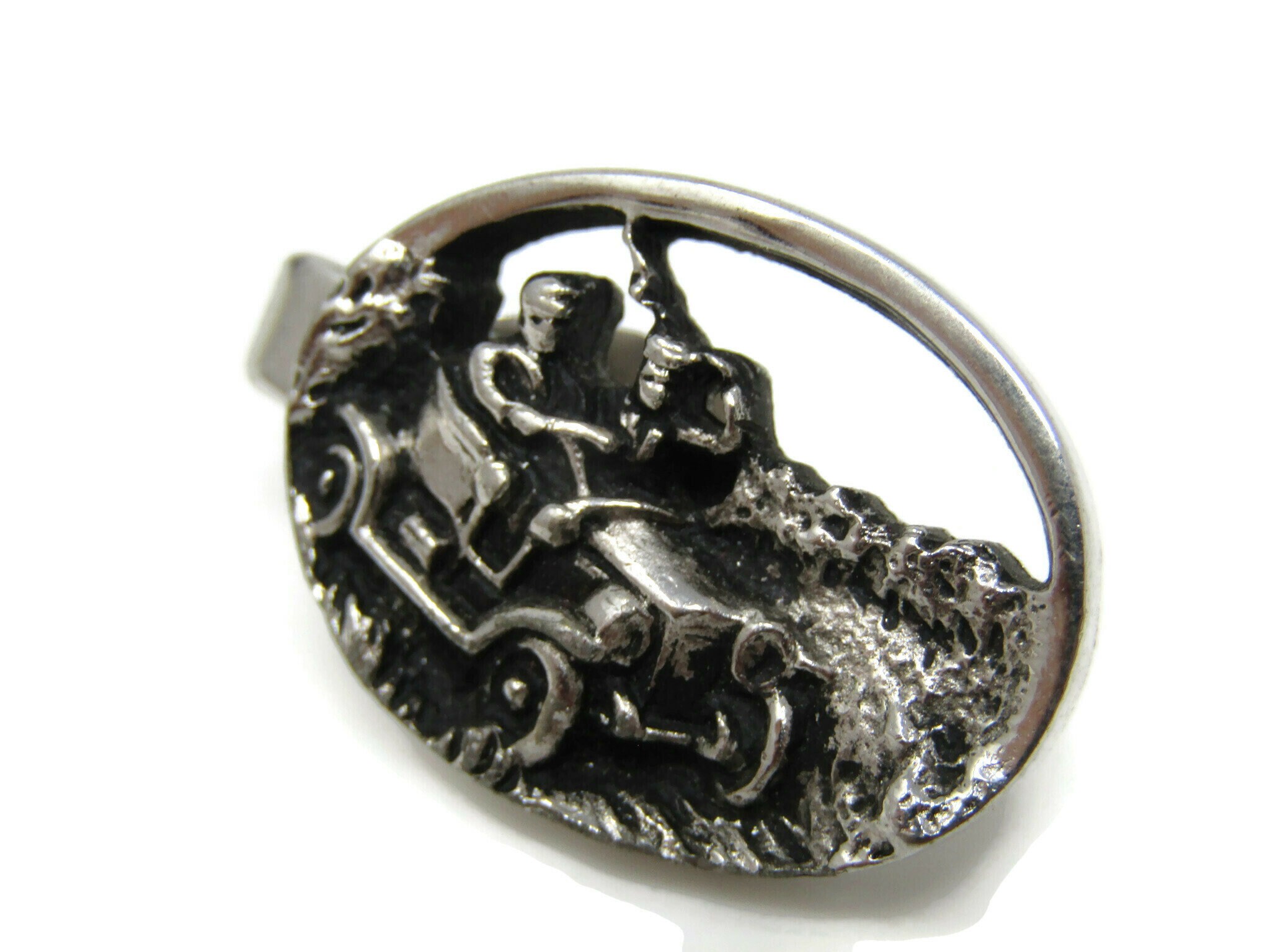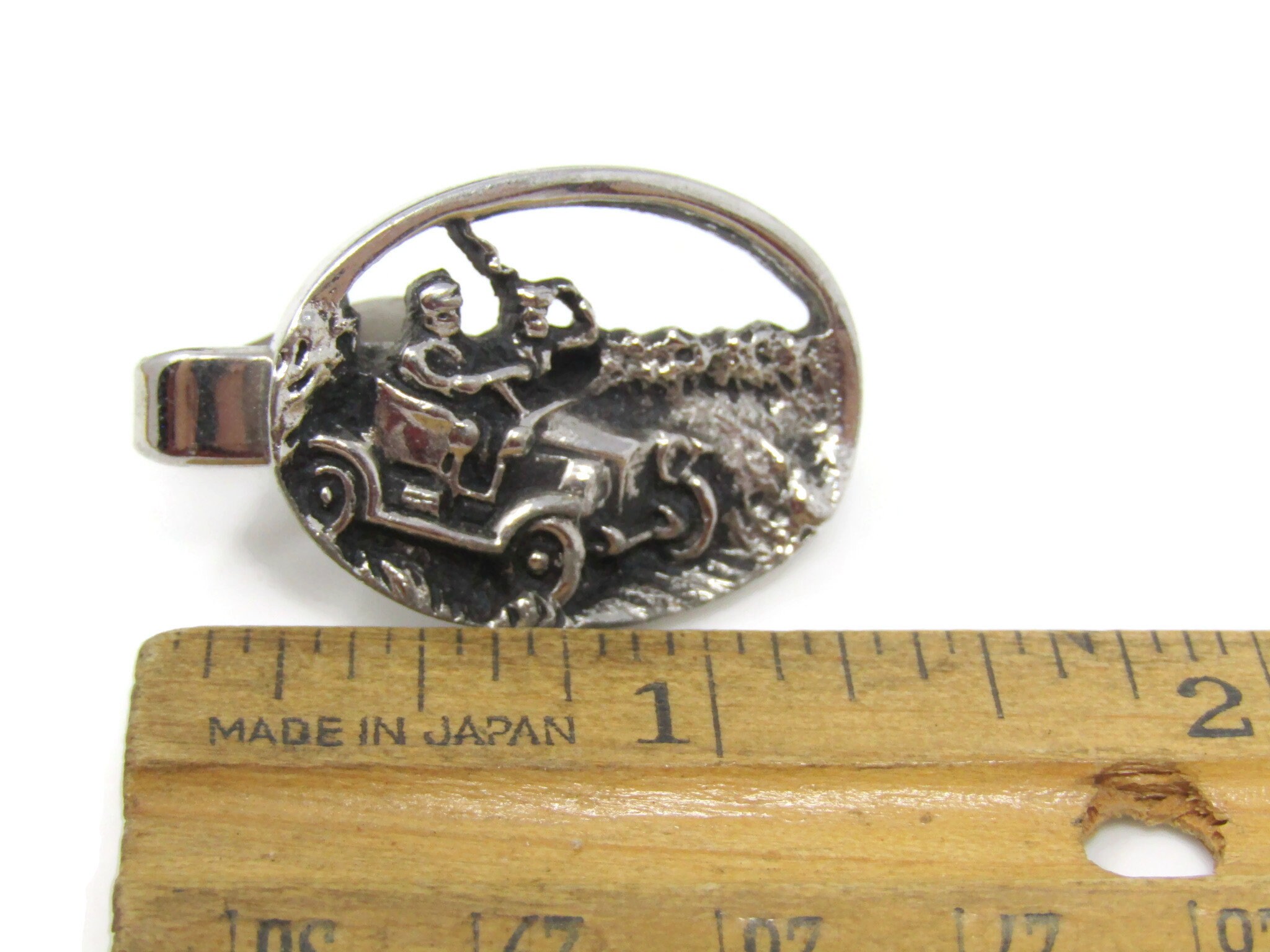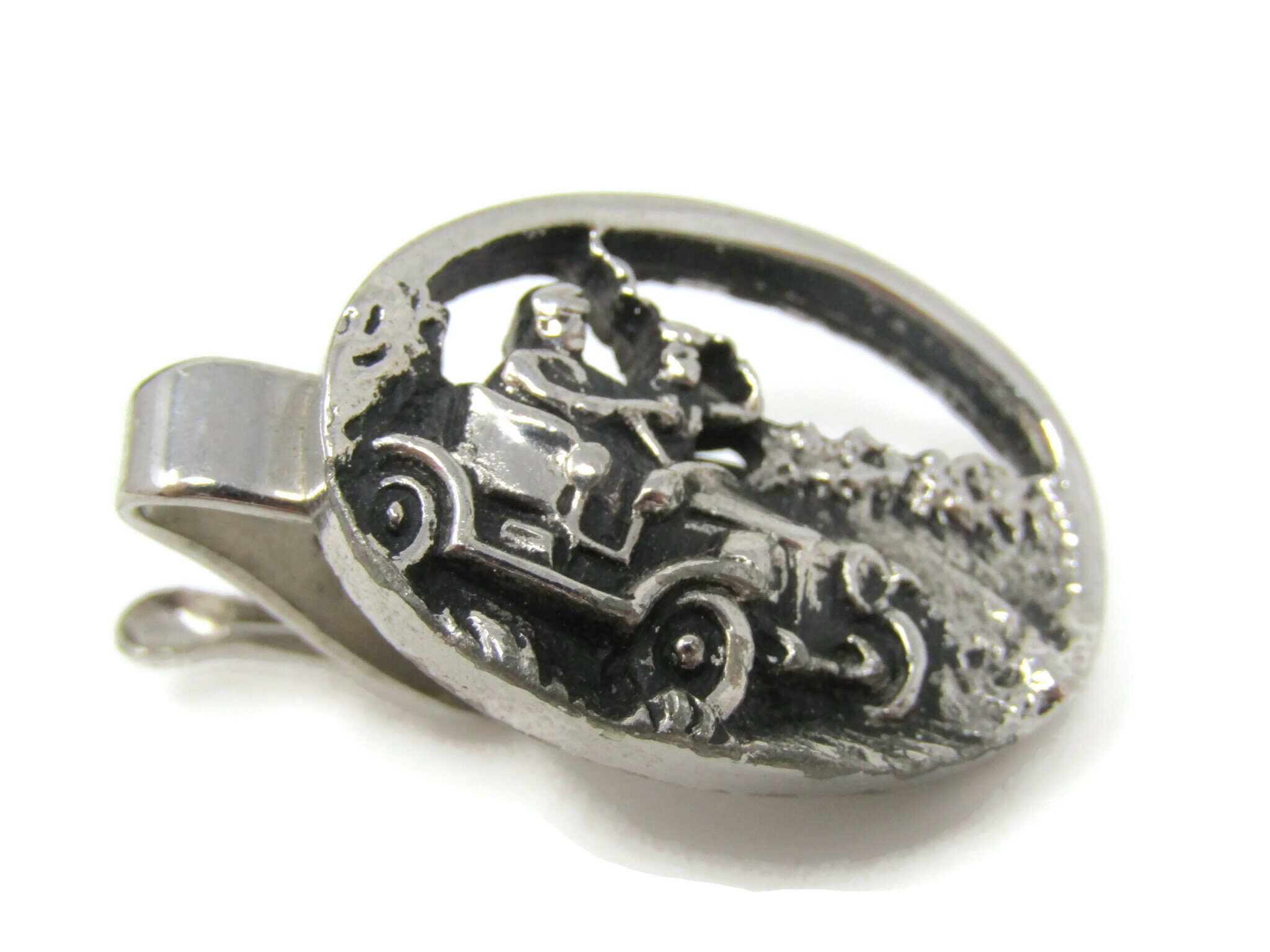 Antique Car Joyride Tie Clip Bar Silver Tone Vintage Men's Jewelry Nice Design