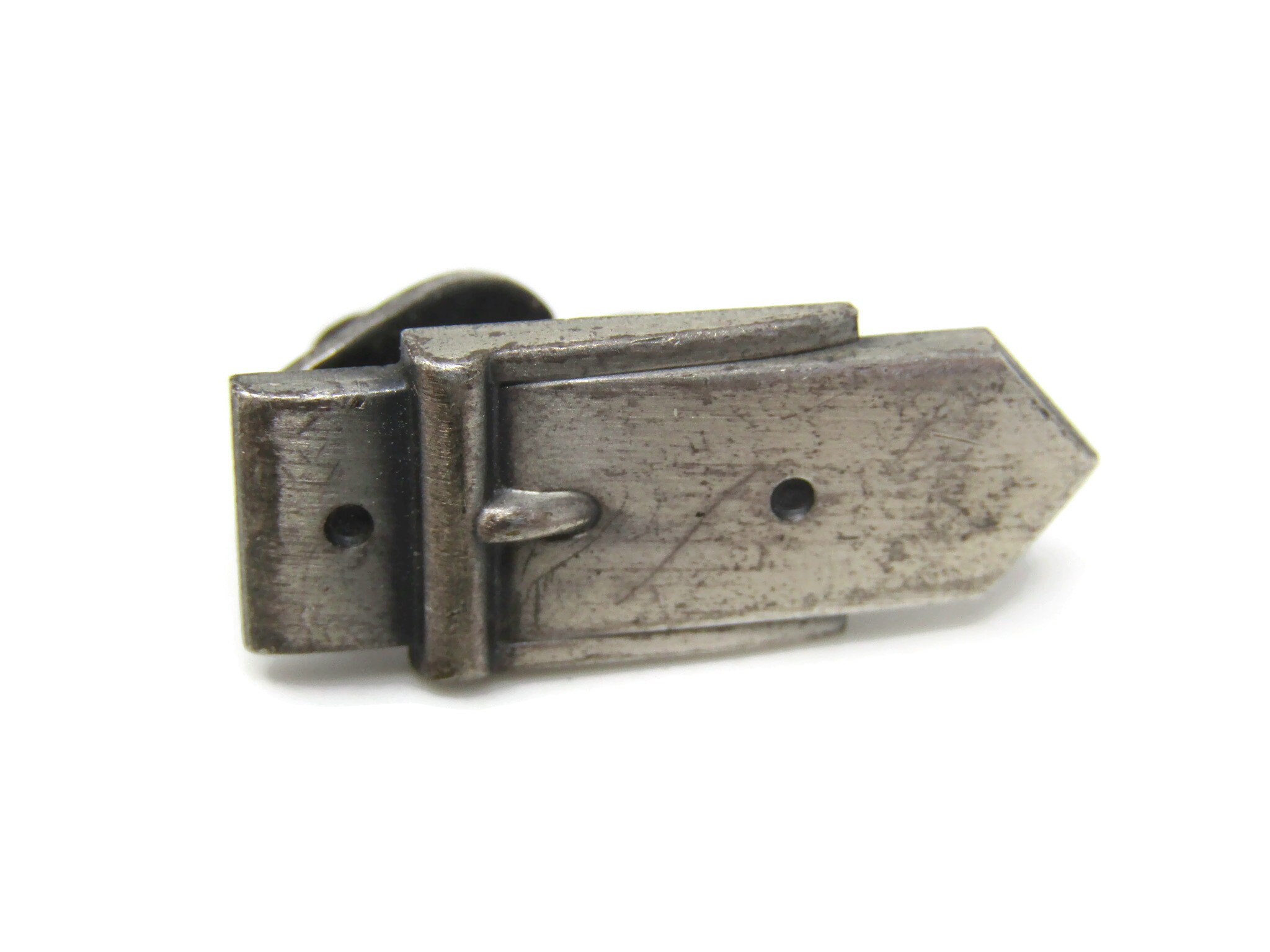 Small Belt Buckle Tie Clip Bar Silver Tone Vintage Men's Jewelry Nice Design