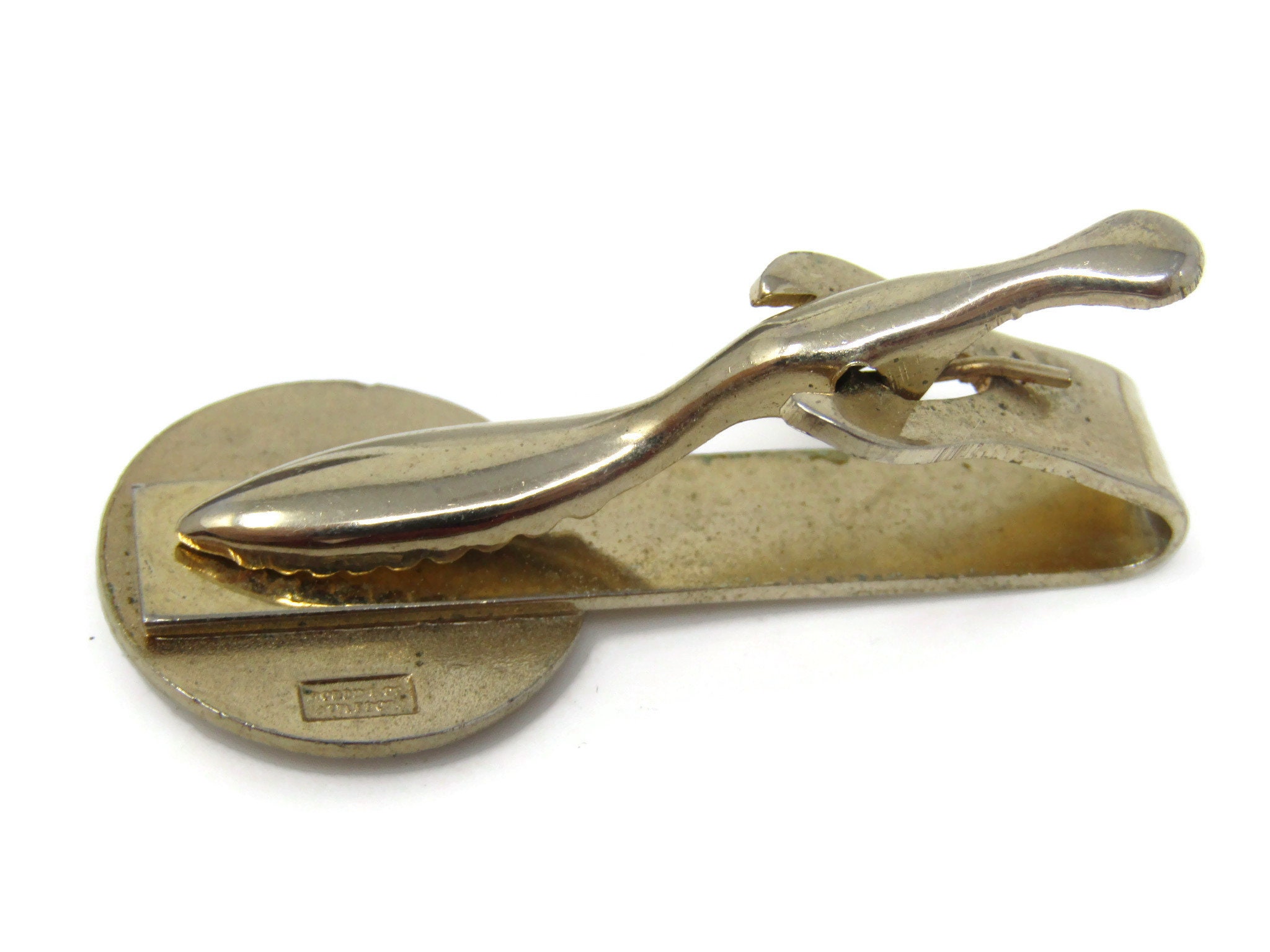 Patriot Minuteman Cartoon Tie Clip Bar Gold Tone Vintage Men's Jewelry Nice Design