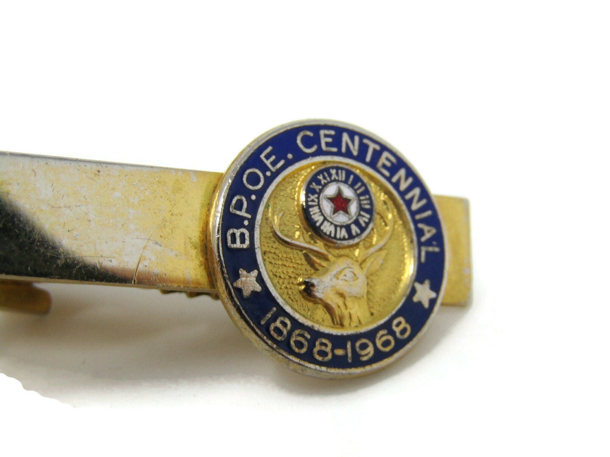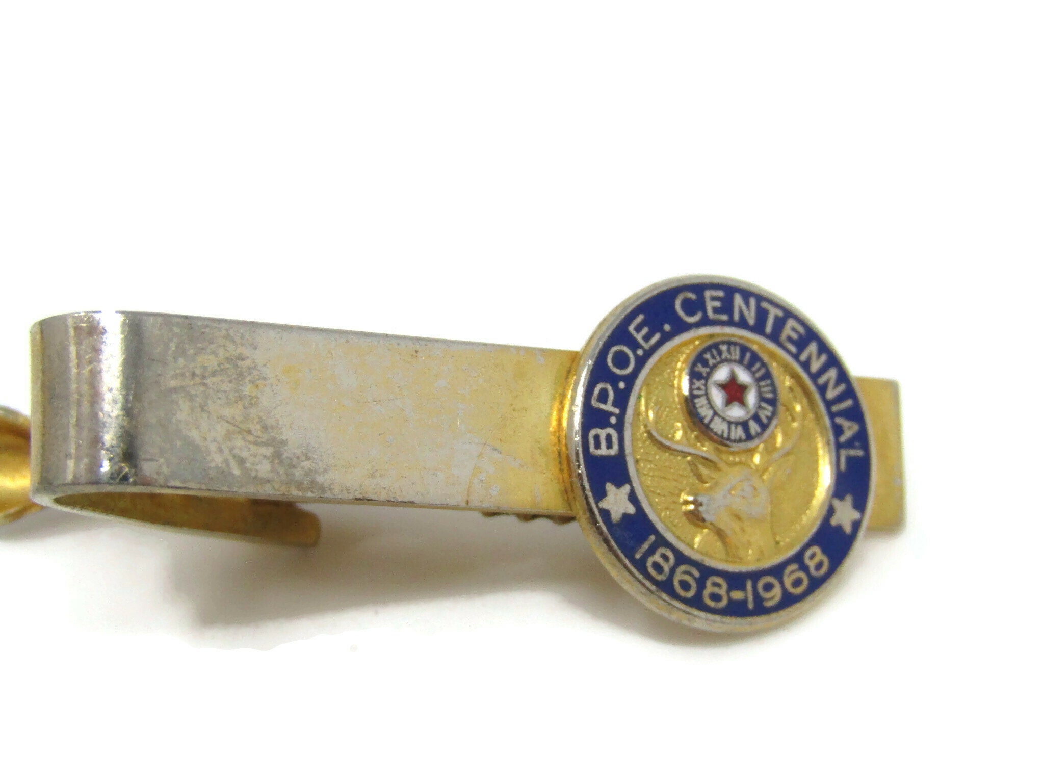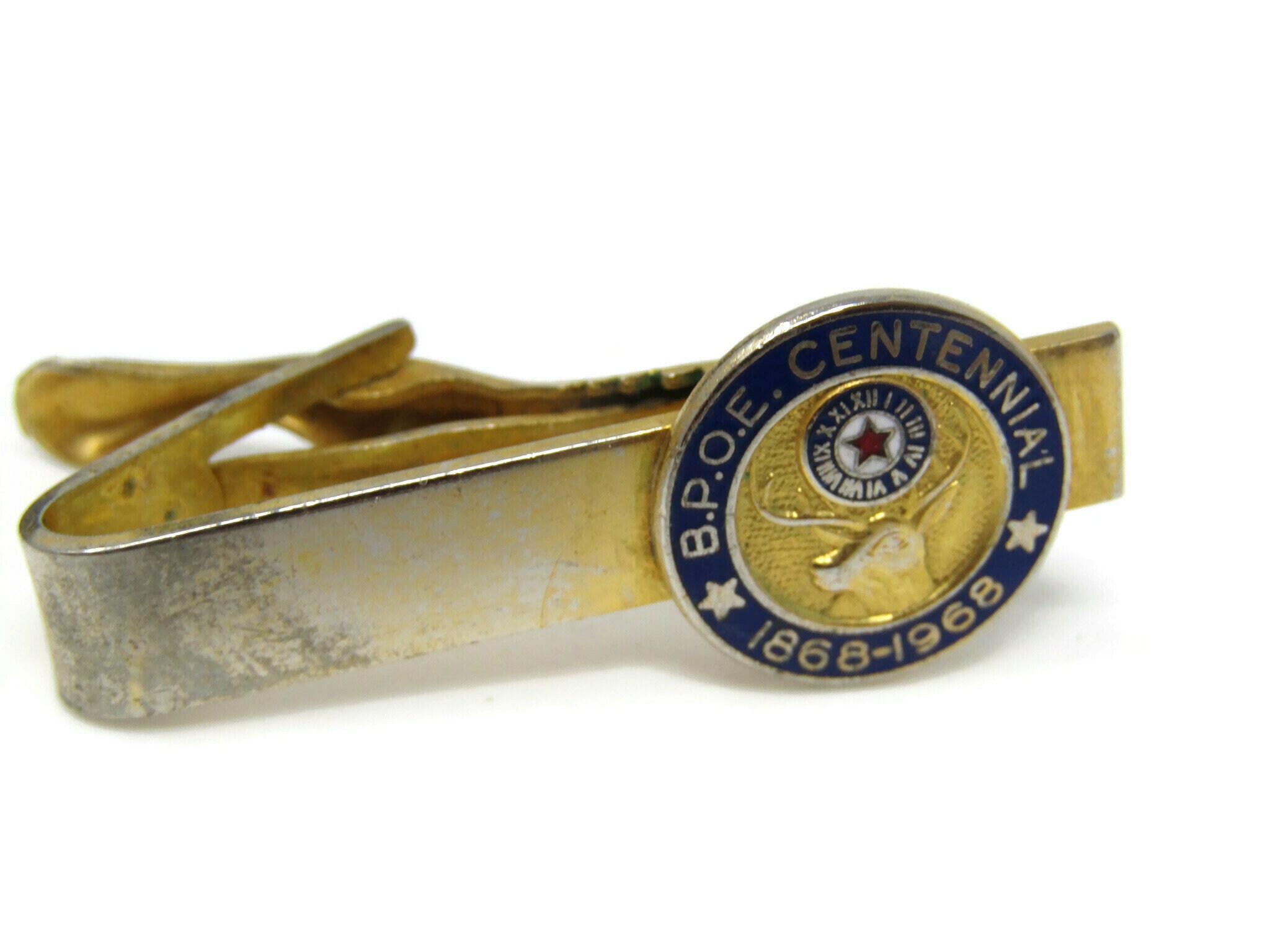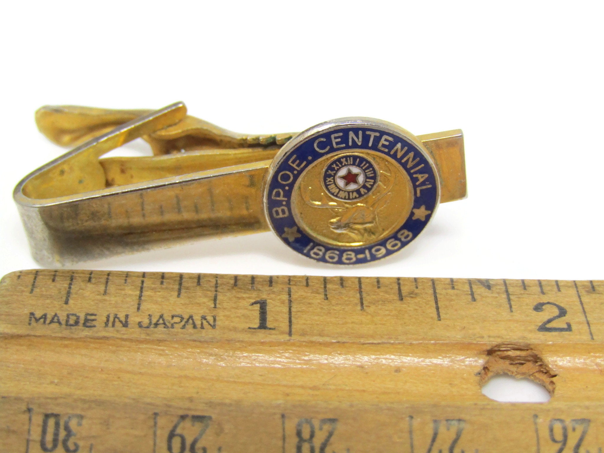 BPOE Centennial 1968 Tie Clip Bar Gold Tone Vintage Men's Jewelry Nice Design